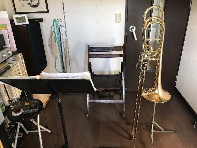 トロンボーン、バストロンボーンは片手で持つ楽器でかなり大きい物と言えます。僕の使用しているバストロンボーンは軽いのですが3.7Kg!! これを片手で持つなんて結構至難の技です。
